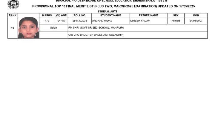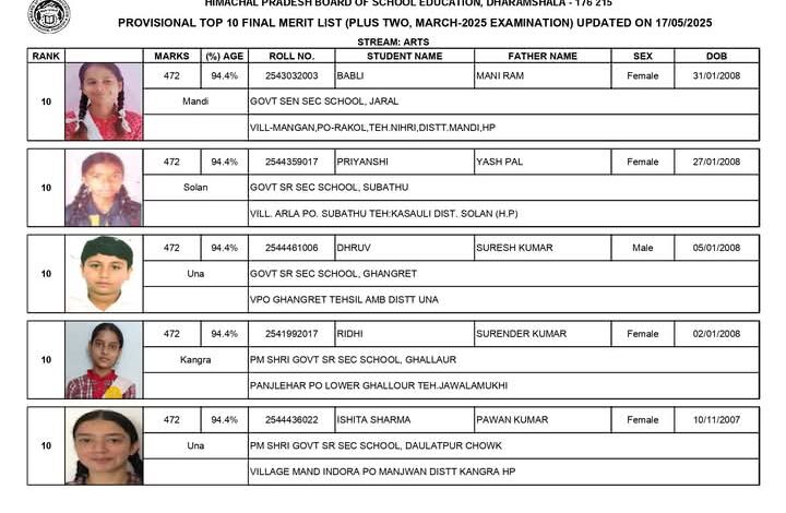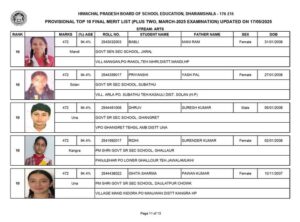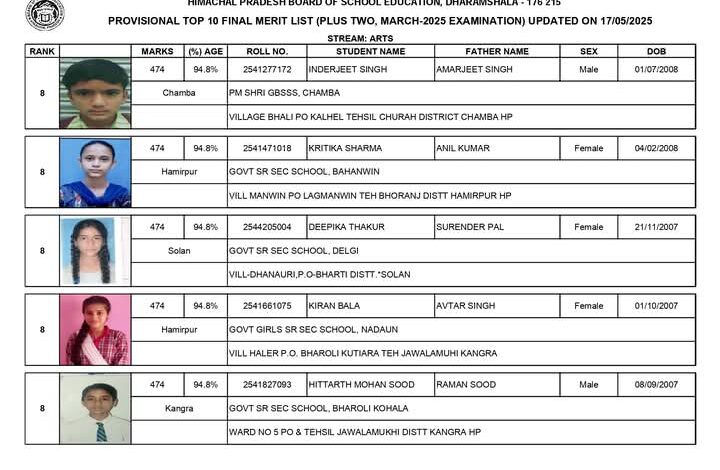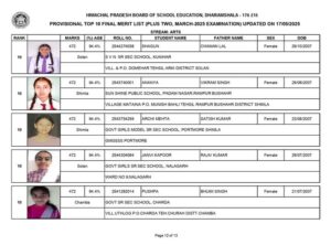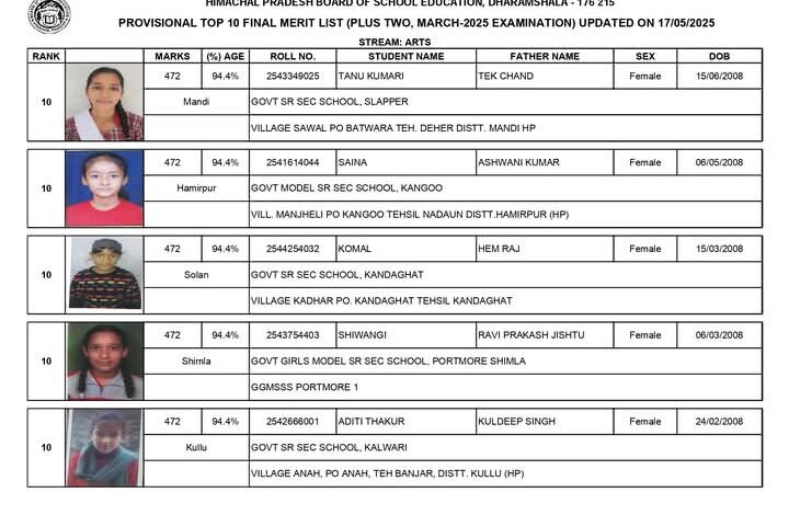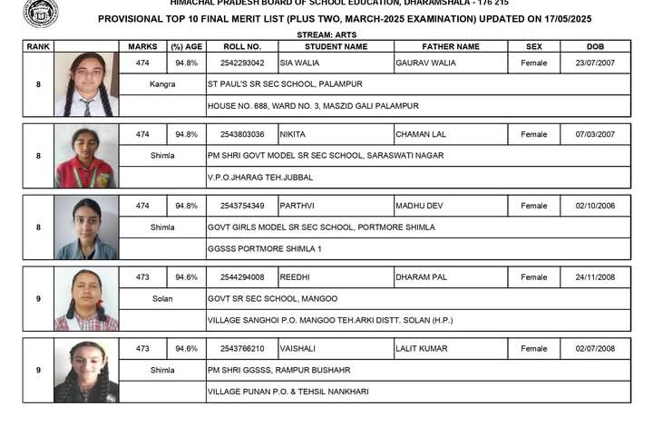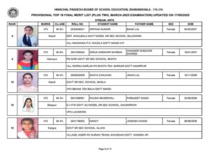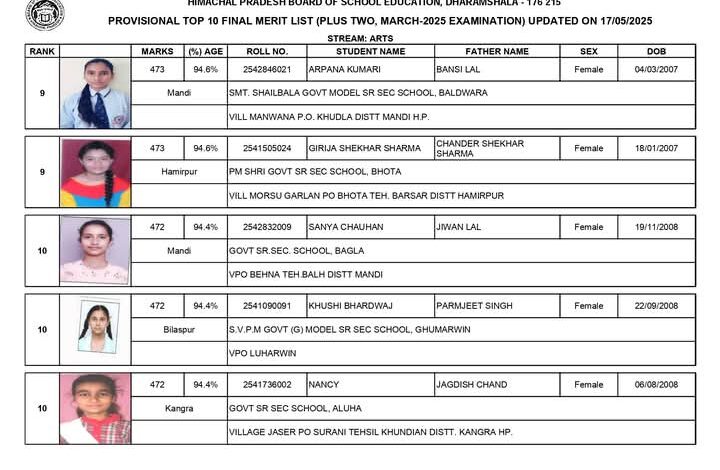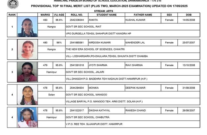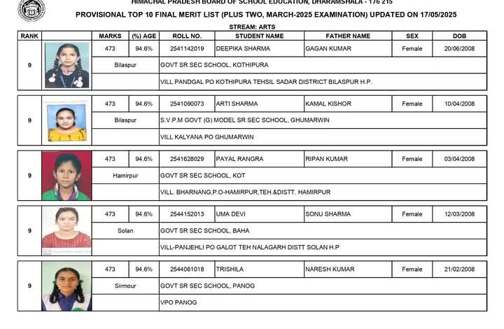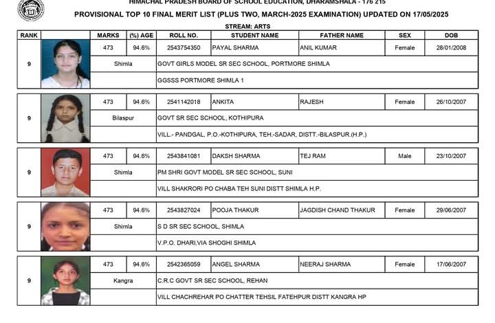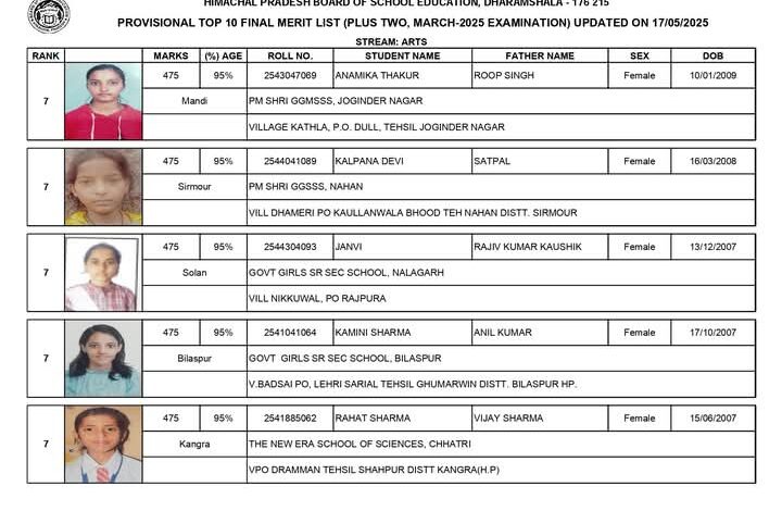 हिमाचल प्रदेश में पढ़ाई के मामले ने बेटियों ने फिर से अपना लोहा मनवाया है। 12 वीं की परीक्षा में तीनों संकायों में बेटियों ने ही पहला स्थान पाया है। मैरिट में कुल 75 छात्रों ने स्थान पाया है। इसमें 61 लड़कियां और 14 लड़के हैं।